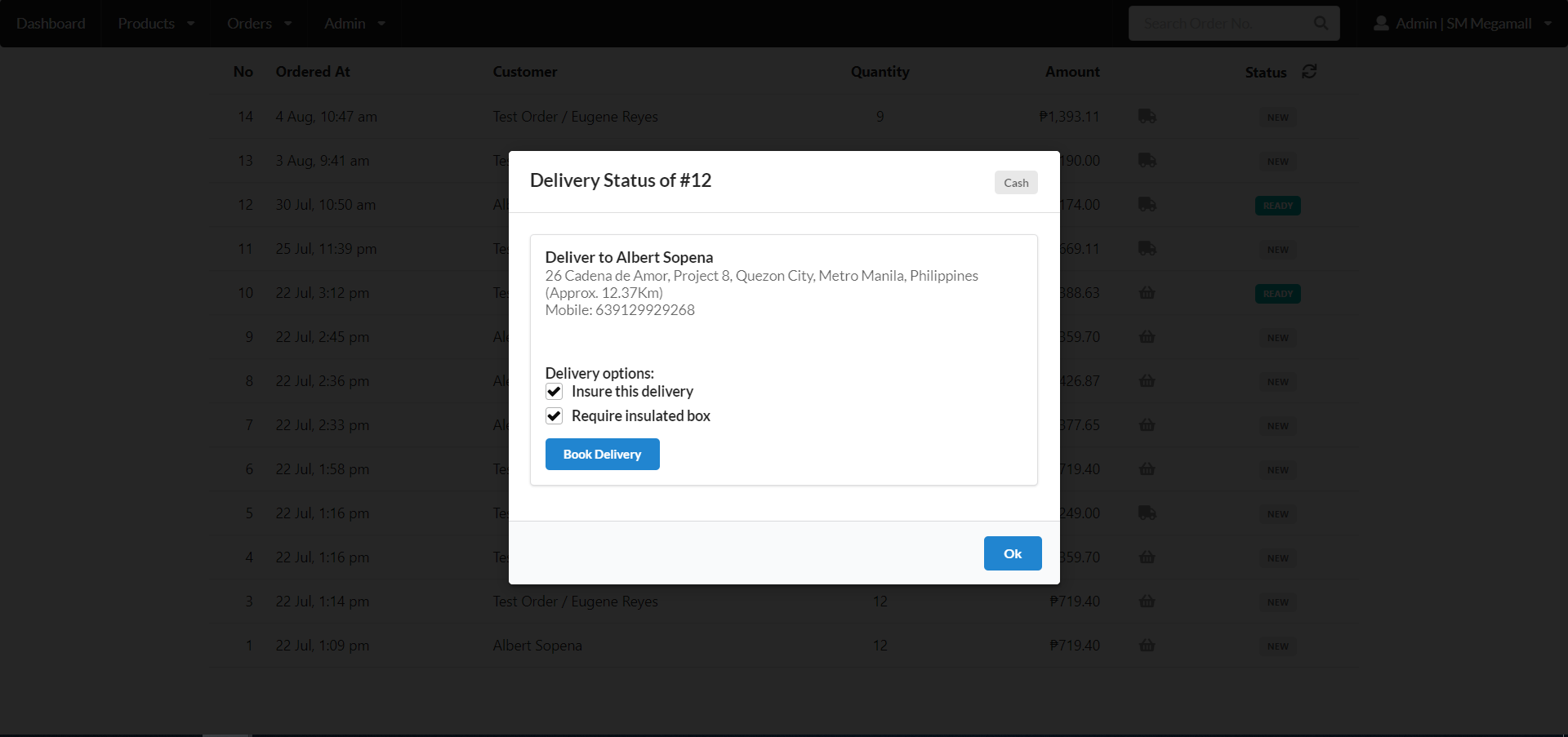 **(4)** A Notification Dialog will appear, Click on Book Delivery
