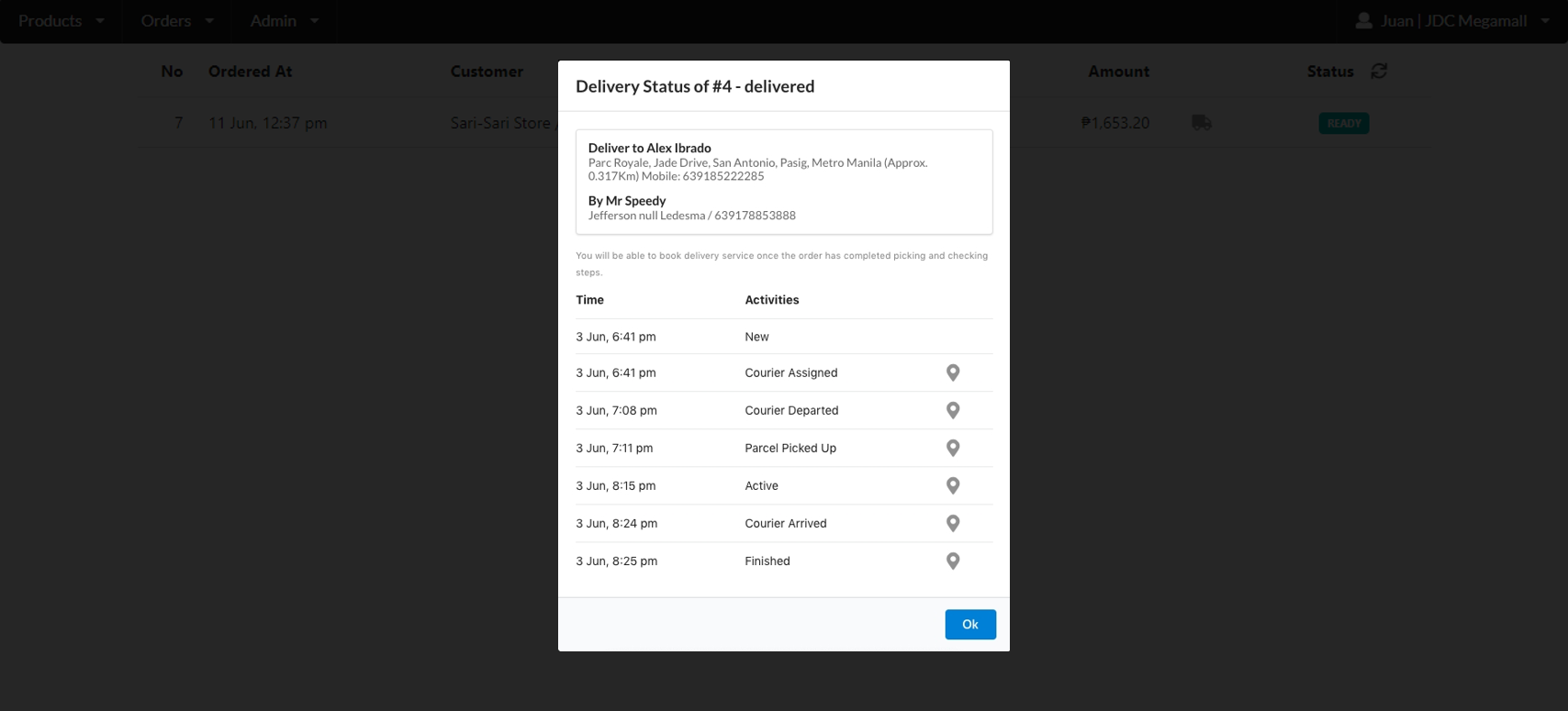 **(8)** The Order Status will automatically be changed to Delivering