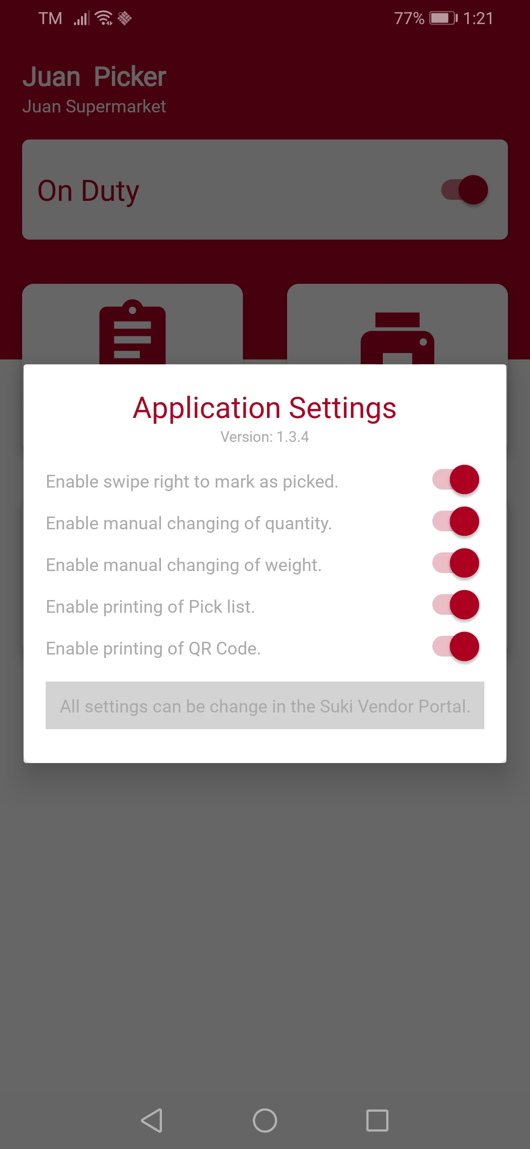<div><figure><img src="https://4163731625-files.gitbook.io/~/files/v0/b/gitbook-x-prod.appspot.com/o/spaces%2FjANZdCcwJXnHA9psRF0V%2Fuploads%2Fgit-blob-d673a06b2bb826e50c0f1b27e119bc1537de2da7%2F1.jpg?alt=media" alt=""><figcaption><p>Picker App Settings</p></figcaption></figure> <figure><img src="https://4163731625-files.gitbook.io/~/files/v0/b/gitbook-x-prod.appspot.com/o/spaces%2FjANZdCcwJXnHA9psRF0V%2Fuploads%2Fgit-blob-933fe02f8a4b99c22c6eb7d676d0dc1375173dc1%2F2.jpg?alt=media" alt=""><figcaption><p>Swipe to Mark Items as Picked</p></figcaption></figure> <figure><img src="https://4163731625-files.gitbook.io/~/files/v0/b/gitbook-x-prod.appspot.com/o/spaces%2FjANZdCcwJXnHA9psRF0V%2Fuploads%2Fgit-blob-aaf85a48844a129b205d483041071c02a3d7a36d%2F3.jpg?alt=media" alt=""><figcaption><p>Manual Changing of Quantity</p></figcaption></figure> <figure><img src="https://4163731625-files.gitbook.io/~/files/v0/b/gitbook-x-prod.appspot.com/o/spaces%2FjANZdCcwJXnHA9psRF0V%2Fuploads%2Fgit-blob-e4ad4124120ce908001493a798ed4edf1077907f%2F4.jpg?alt=media" alt=""><figcaption><p>Manual Changing of Weight</p></figcaption></figure> <figure><img src="https://4163731625-files.gitbook.io/~/files/v0/b/gitbook-x-prod.appspot.com/o/spaces%2FjANZdCcwJXnHA9psRF0V%2Fuploads%2Fgit-blob-c27d72c780a4454d3b7fd7551d847586c3c79d24%2F5.jpg?alt=media" alt=""><figcaption><p>Enable Print of Picklist</p></figcaption></figure> <figure><img src="https://4163731625-files.gitbook.io/~/files/v0/b/gitbook-x-prod.appspot.com/o/spaces%2FjANZdCcwJXnHA9psRF0V%2Fuploads%2Fgit-blob-7b9d06f3d14f64b96125db115d2255d242620469%2F6.jpg?alt=media" alt=""><figcaption><p>Pick List Print Out</p></figcaption></figure></div>
