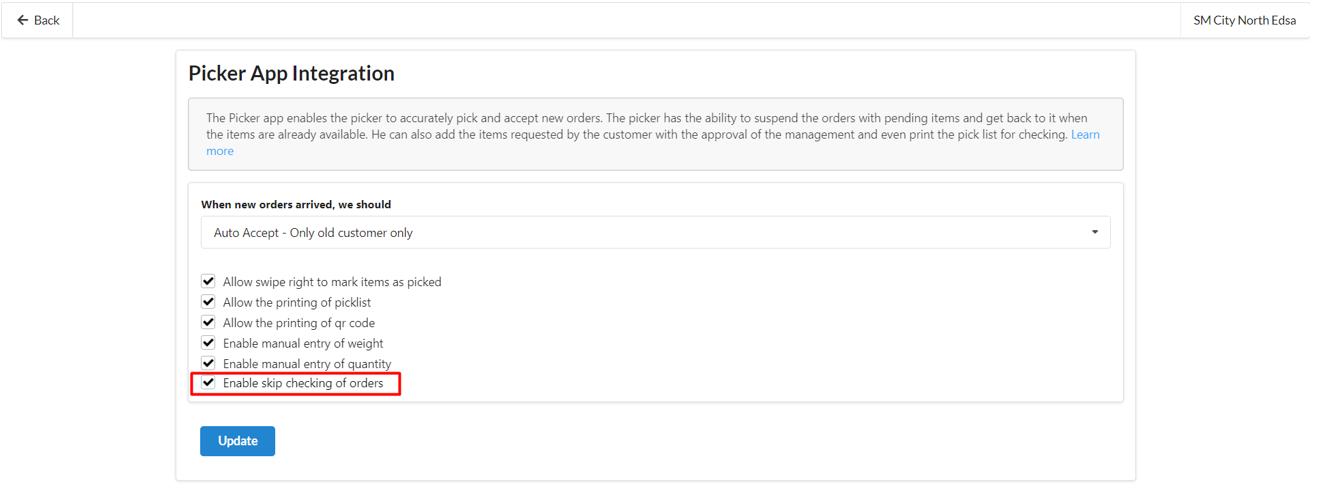 *This will allow the vendor to Skip Checking of items after picking up*